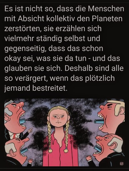 An alle die Greta so gut und authentisch finden, bitte nicht vergessen das sie nur eine ferngesteuerte Marionette ist. :roll: