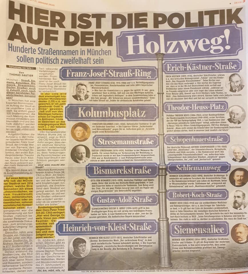 In München sollen Straßennamen umbenannt werden. Eine "Expertenkommission" hat eine Liste erstellt über angeblich politisch nicht mehr tragbare Persönlichkeiten aus Politik und Wissenschaft.