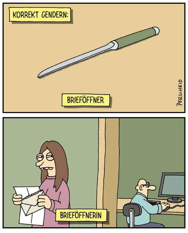 Da habe ich letzte Woche im TV gesehen, dass sich Frauen, die ihren Dienst in der Bundeswehr leisten, gewaltig über den neuen Gender-Mist beschwert haben. Sie wollen das nicht, sondern weiterhin so angesprochen werden wie immer.