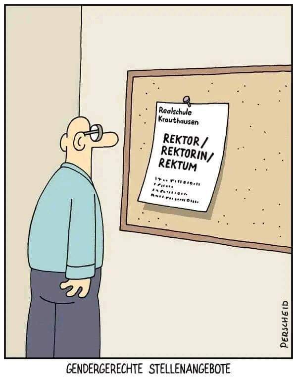 Na endlich!!!! Wo kommen wir auch hin, wenn jeder macht was er will, ich kann ja auch nicht die Rechtschreibung infrage stellen und schreiben wie ich will. Wo kommen wir hin ohne Spielregeln. Dabei sollen schon Studenten schlechtere Noten bekommen haben, wenn sie nicht gegendert haben. Die Einzigen, die ich in meinem Leben als Erziehungsberechtigte anerkenne, waren meine Eltern, die mich noch Ehrlichkeit, Anstand und Hilfsbereitschaft gelehrt haben. Die damaligen Lehrer (ich BJ39) haben mir neben anderem den richtigen Umgang mit der Deutschen Sprache beigebracht und mich nicht erzogen, so wie es heute mittlerweile angedacht ist.