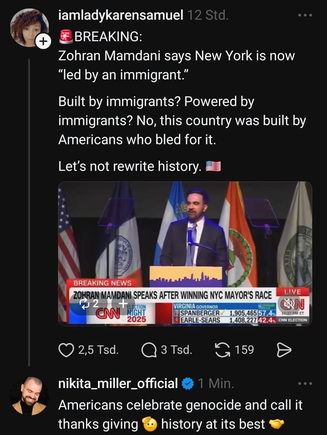 Das weiß der große Hoffnungsträger auch. Man kann nur die Daumen drücken, dass seine Wähler das erst merken, wenn die Republikaner zumindest die Zwischenwahlen (Midterms) im nächsten Jahr verloren haben. Trump ist nämlich gegenüber jedem Politiker der bisherigen amerikanischen Geschichte einschließlich Mamdani das größere Übel.