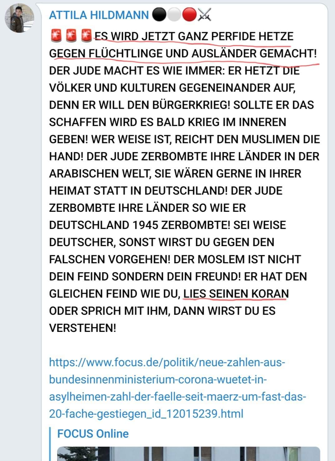 Richtig so, Volksgenosse Hildmann engagiert sich wieder VORBILDLICH gegen Geflüchtetenfeindlichkeit und Islamophobie! Das wird seine Freunde von Querdenkern, aus der AfD und den Bloggern der alternativen Lügenpresse aber richtig freuen.