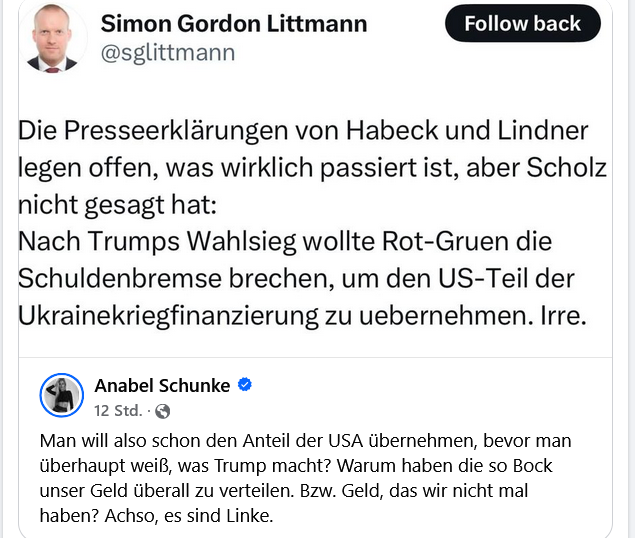 AlexRE hat geschrieben:Jetzt ist es passiert, der Bundeskanzler hat der Ampel den Stecker gezogen. Die hohen Herrschaften an den feudalen Höfen von ARD und ZDF haben den Moment der Entscheidung allerdings verpennt: