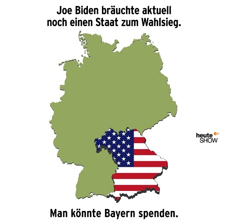 Nach gegenwärtigem Auszählungsstand kann Biden voraussichtlich auf bestenfalls genau die mindestens nötigen 270 Wahlmänner kommen, es sei denn in Pennsylvania würde durch die angeblich hohe Zahl der Briefwähler bei den Demokraten dort noch alles zugunsten von Biden kippen. Dort führt Trump derzeit noch deutlich mit 52,4 % zu 46,5 %, es sind allerdings auch erst 85 % der Stimmen ausgezählt.