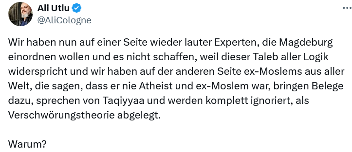 Screenshot 2024-12-24 at 14-22-26 Ali Utlu auf X „Wir haben nun auf einer Seite wieder lauter Experten die Magdeburg einordnen wollen und es nicht schaffen weil dieser Taleb aller Logik widerspricht und wir haben auf der ande[...].png
