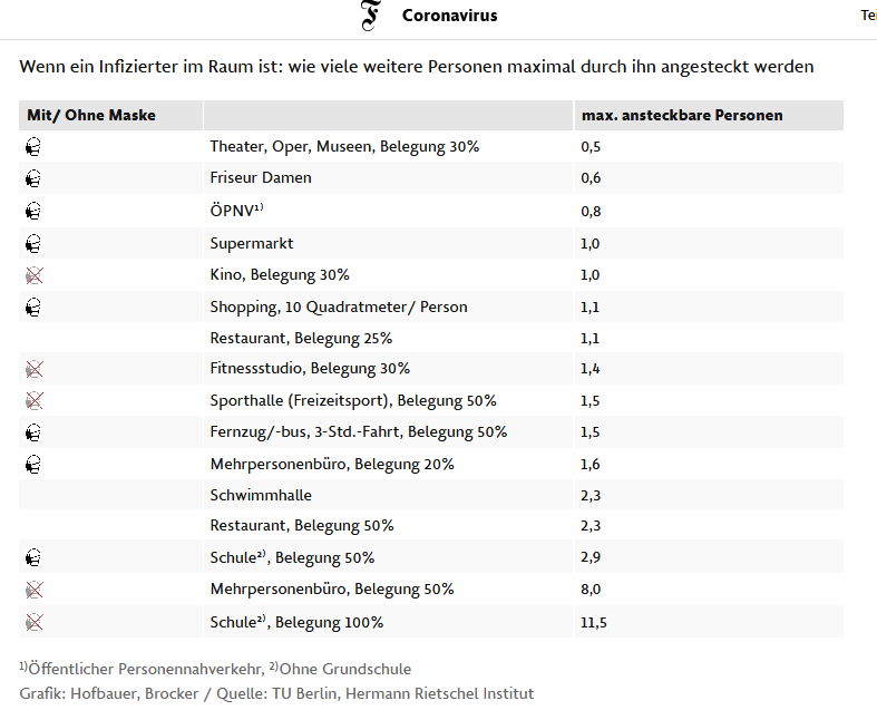 In einem zur Hälfte besetzten Restaurant ist die Ansteckungsgefahr 2 1/2 mal so groß wie im ÖPNV? Sorry das glaube ich nicht. An der Stelle bin ich ausnahmsweise mal Verschwörungstheoretiker. Hier soll uns eine Lüge verkauft werden, weil man auf den ÖPNV nicht verzichten kann oder will und deshalb das größte Risiko kleinredet, während man die lobbyschwache Gastronomie beliebig triezen kann.