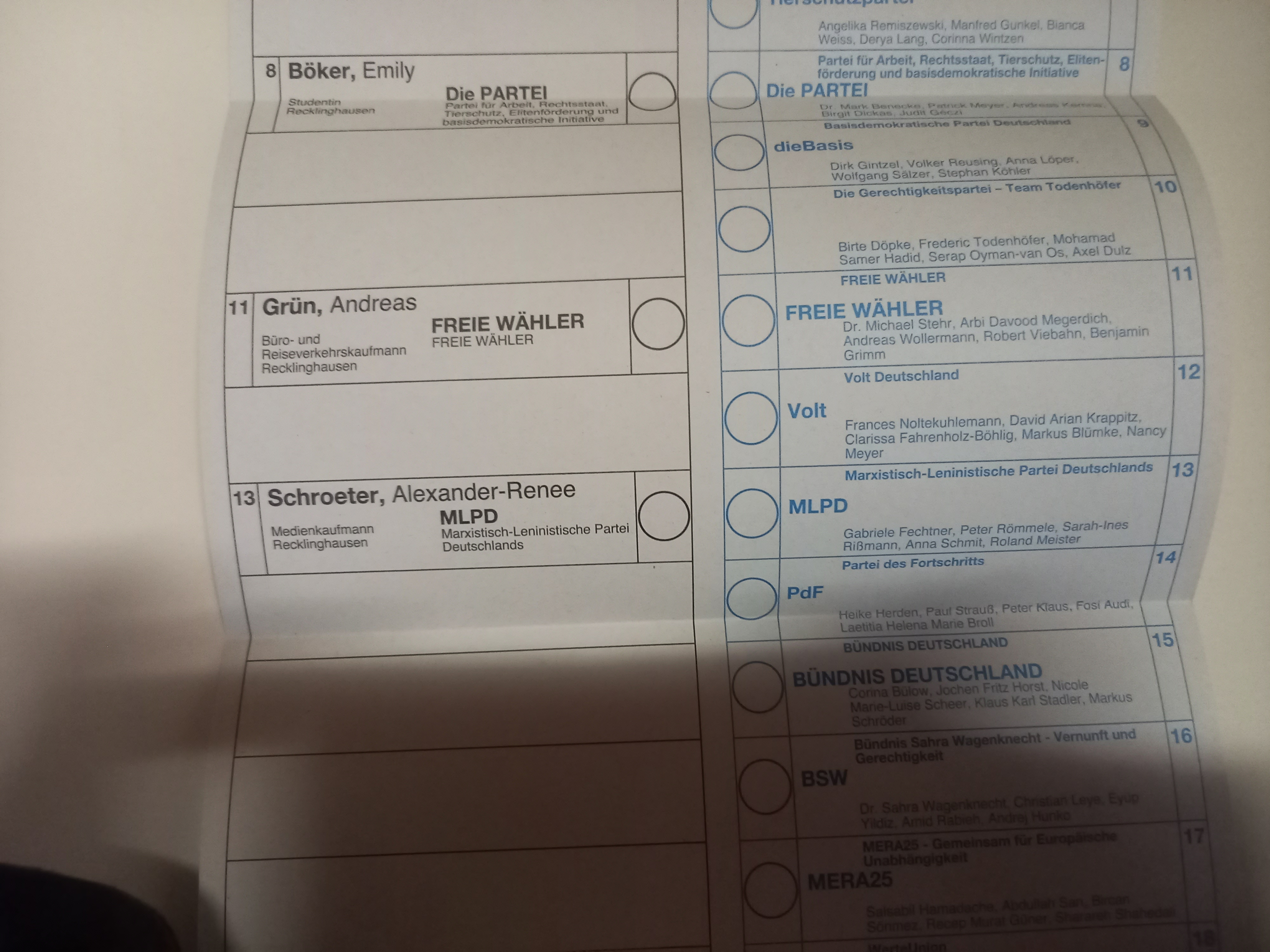 Ich bin jedenfalls für heute bedient. Ich bin mit der Absicht, wahrscheinlich Freie Wähler und auf keinen Fall Grüne zu wählen, in die Wahlkabine gegangen und dann kommt sowas: