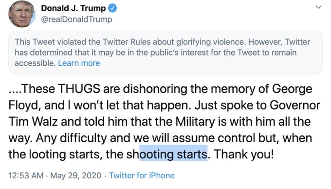 President Trump's threatening tweet about Minneapolis was hidden by Twitter for "glorifying violence."