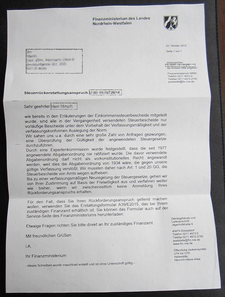 Das blöde Geschwurbel von den komplett verfassungswidrigen Steuergesetzen kann jedenfalls nicht von einer Behörde stammen. Ich denke schon, dass ich die "Handschrift" richtig einschätze.