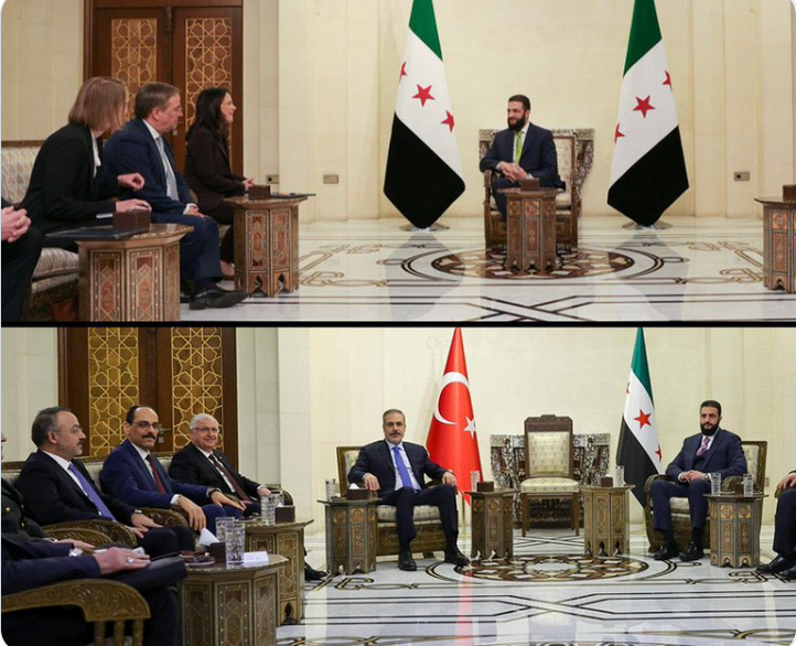 Barbock und Laschet sitzen wie Bittsteller auf der Couch - ohne die deutsche Flagge im Hintergrund, obwohl die beiden 300 Millionen im Gepäck hatten und wieder keinen Handschlag für Baerbock. Wozu auch, das Geld fließt trotzdem für den jetzigen syrischen Regierungschef und früheren Terroristenanführer.