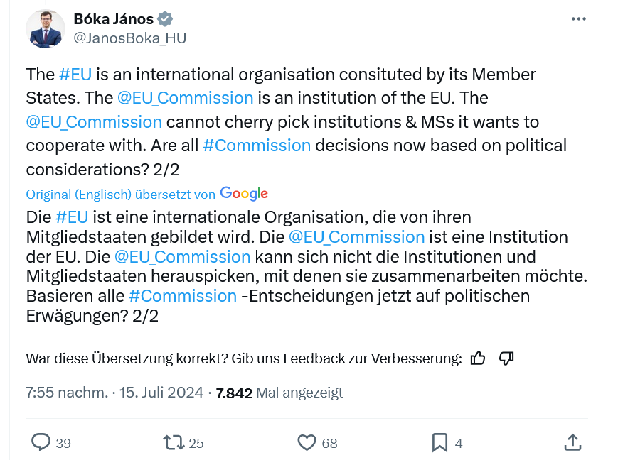 maxikatze hat geschrieben:Warum sind sie "erbost"? Passt es nicht in den Kram, dass Orban, der jetzt für 6 Monate als Ratspräsident fungiert, auch mit Trump reden will?