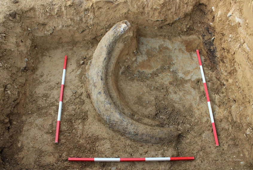 1,80 Meter lang – und sehr gut erhalten: Ein achtjähriger Schüler hat diesen Mammut-Stoßzahn zufällig in einer Baugrube im österreichischen Mattersburg entdeckt