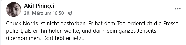 Erfreut hat er uns aber mit seinen angedichteten genialen und unwiederholbaren Fähigkeiten und Heldentaten, für soviel Freude wird selten ein Schauspieler den Menschen allein mit seinem Da-Sein gemacht haben.